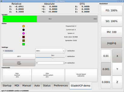 GladeVCP is a LinuxCNC component which adds the ability to add a new user interface panel to LinuxCNC user interfaces like: