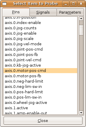 Hal Meter can be loaded from a terminal or from Axis. Hal Meter is faster than Hal Show displaying values. Hal Meter has two windows, one to pick the pin, signal, or parameter to monitor and one that displays the value. Multiple Hal Meters can be open at the same time. If you use a script to open multiple Hal Meters you can set the position of each one with -g X Y relative to the upper left corner of your screen. See the man page for more options.