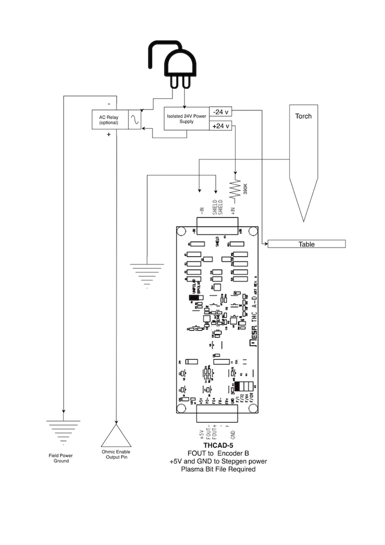 Peter Wallace von Mesa Electronics schlägt vor: "Wenn Sie eine CNC-kompatible Plasmaquelle mit einem Spannungsteiler haben, würde ich den THCAD innerhalb Ihres Elektronikgehäuses zusammen mit der gesamten anderen Bewegungshardware montieren. Wenn Sie eine manuelle Plasmaquelle haben und die Rohspannung des Plasmas ablesen, würde ich den THCAD so nah wie möglich an der Plasmaquelle montieren (sogar im Gehäuse der Plasmaquelle, wenn es passt). Wenn Sie ein abgeschirmtes Gehäuse für die THCAD verwenden, sollte die Abschirmung mit der Masse des Elektronikgehäuses verbunden sein, nicht mit der Masse der Plasmaquelle."