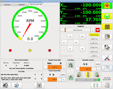 GMOCCAPY 3 has been tested on Debian Jessie, Debian Stretch and MINT 18 with LinuxCNC master and 2.8 release. It fully support joint / axis changes of LinuxCNC, making it suitable as GUI for Scara, Robots or any other config with more joints than axes. So it supports also gantry configs. If you use other versions, please inform about problems and / or solutions on the LinuxCNC forum or the German CNC Ecke Forum or LinuxCNC users mailing list.
